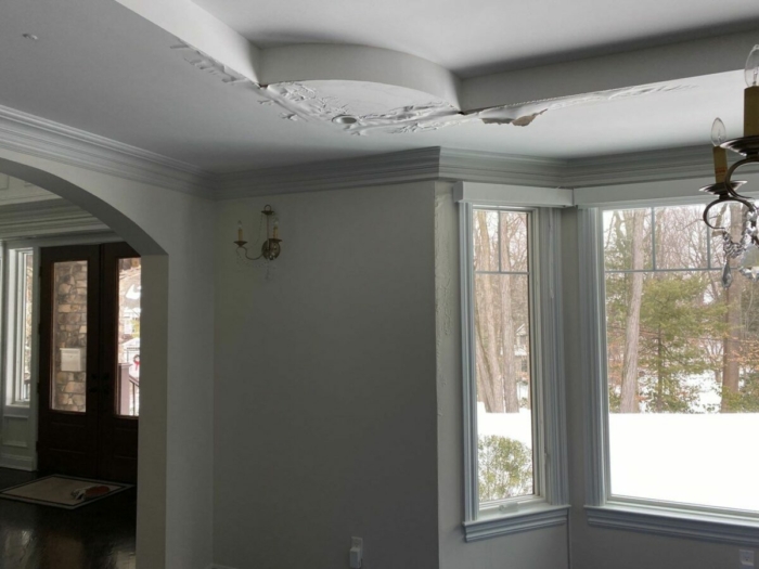 This home had water leakage inside their walls and ceiling due to the ice dams severely affecting the roof. Being that a lot of homes are built with only 3ft (1 roll) of underlayment, Novalis chooses to use 6ft (2 rolls) of underlayment when we re-roof because it is extremely important to us to go that extra inch to cover your home in any situation.